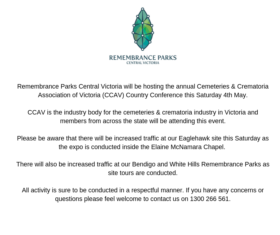 CCAV Conference to be held this 4th May at RPCV admin2022-11-28T05:24:01+00:00 Share This Story, Choose Your Platform! FacebookXRedditLinkedInWhatsAppTelegramTumblrPinterestVkXingEmail Related Posts All sites now open All sites now open Impacts of continued and prolonged rain Impacts of continued and prolonged rain Current Status of Our Sites – Updated 31/10/2022 Current Status of Our Sites – Updated 31/10/2022 Symons Lawn Temporarily Closed Symons Lawn Temporarily Closed