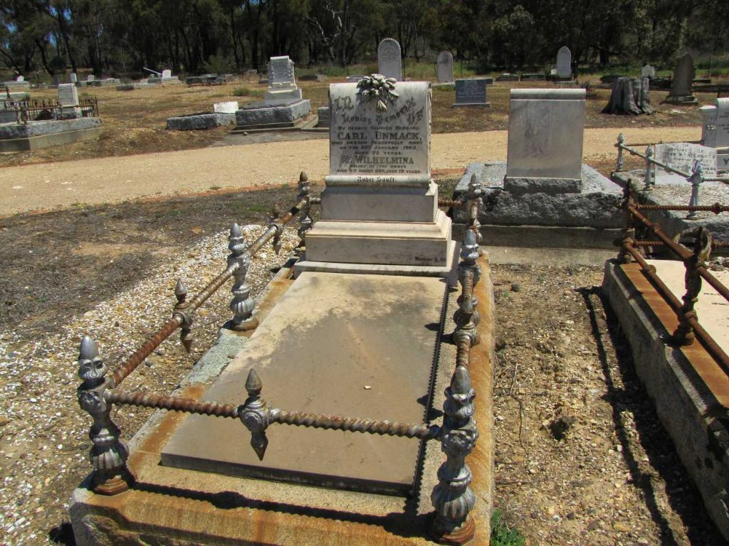 CARL UNMACK was born in a farming community near Mecklenberg, Germany, in 1830. The son of Johann and Marie (nee Liepert) he immigrated to Australia arriving in Sydney in 1852. No doubt attracted by the discovery of gold, he moved on to arrive in Sandhurst c.1853. Like many others he became a quartz miner and was quite successful in his mining interests at Diamond Hill, where he resided for some years.