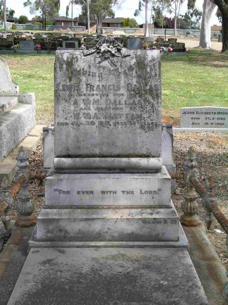 A very popular and well respected man, Lewis Dallas was interred on Thursday 3rd January 1901 at Kangaroo Flat Cemetery in the Presbyterian Section, grave 2626 – interment 15/1017, and a lovely headstone remains in his honour.