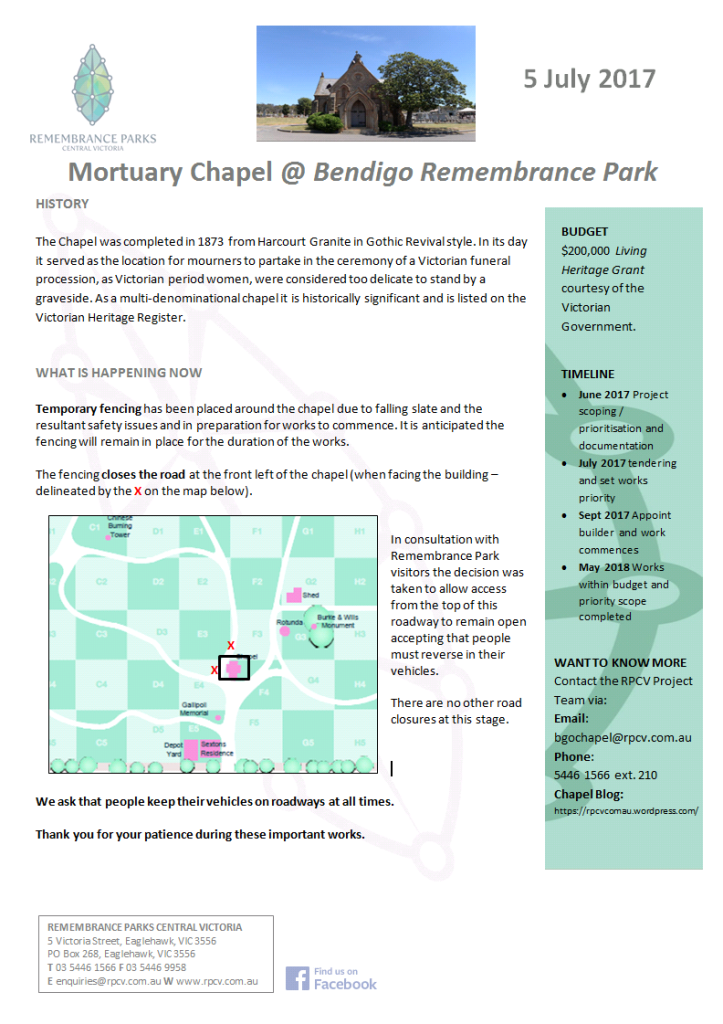 Temporary road closure at Bendigo Remembrance Park. admin2022-11-28T05:26:45+00:00 Share This Story, Choose Your Platform! FacebookXRedditLinkedInWhatsAppTelegramTumblrPinterestVkXingEmail Related Posts All sites now open All sites now open Impacts of continued and prolonged rain Impacts of continued and prolonged rain Current Status of Our Sites – Updated 31/10/2022 Current Status of Our Sites – Updated 31/10/2022 Symons Lawn Temporarily Closed Symons Lawn Temporarily Closed